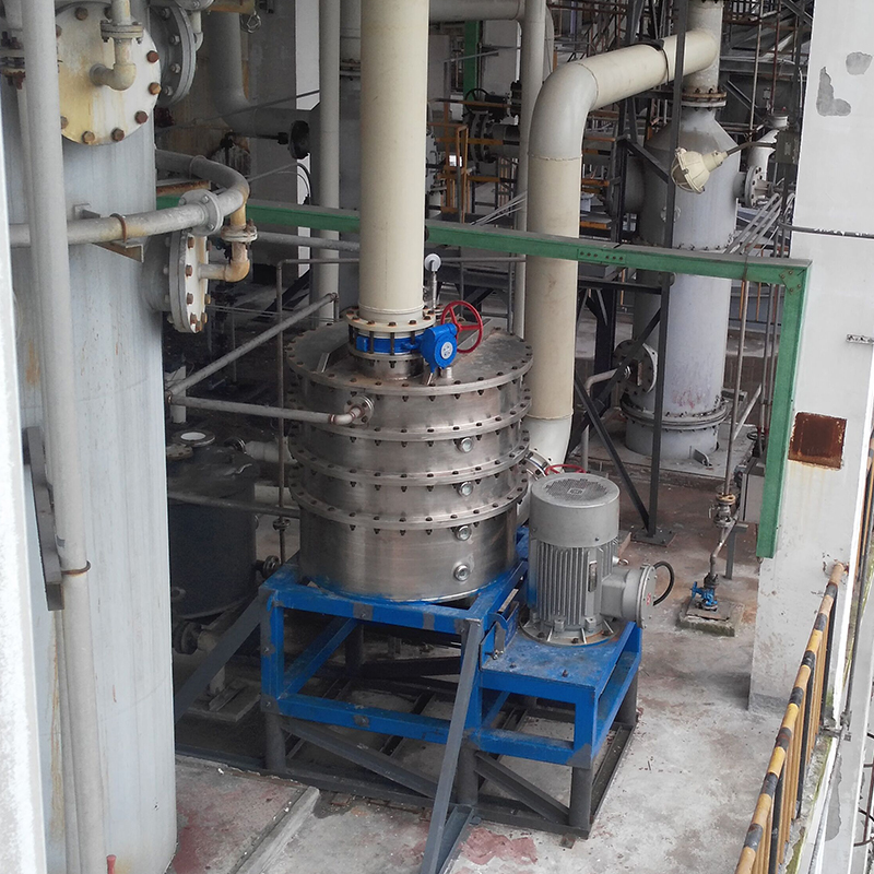 تنشئ هذه العملية ، التي يسهلها حقل الجاذبية العالية ، مساحة سطح محددة كبيرة وواجهة طور تحديثها بسرعة ، مما يضمن الاتصال الكامل للغاز السائل. إن التقاط الغازات المحتوية على الكبريت مثل H2S و SO2 انتقائية للغاية. ترجع هذه الانتقائية إلى تأثير الاصطدام من الدوران الميكانيكي ، وتأثير التقاط الفيلم السائل ، وعمل تصفية القطرات نفسها على غازات القابلية ذات القابلية المنخفضة.